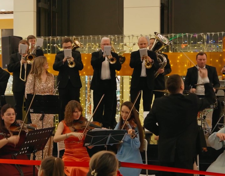 Духовой оркестр с элементами симфонического сохраняет энергию и яркость духовых, приобретает глубину и лиризм струнных, становится универсальным для самых разных музыкальных идей.